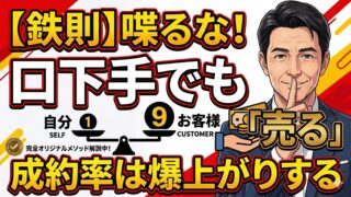 ブログ記事一覧 喋るな!口下手でも「1:9」の法則で成約率は爆上がり(YouTube) 住宅営業マンのあなたは初回接客で何をしたらお客さんが、またあなたと話したいと思ってくれるか知ってますか? 2026.04.06 ブログ記事一覧住宅営業 初回接客住宅営業マンが進化する記事売れる住宅営業マインド
